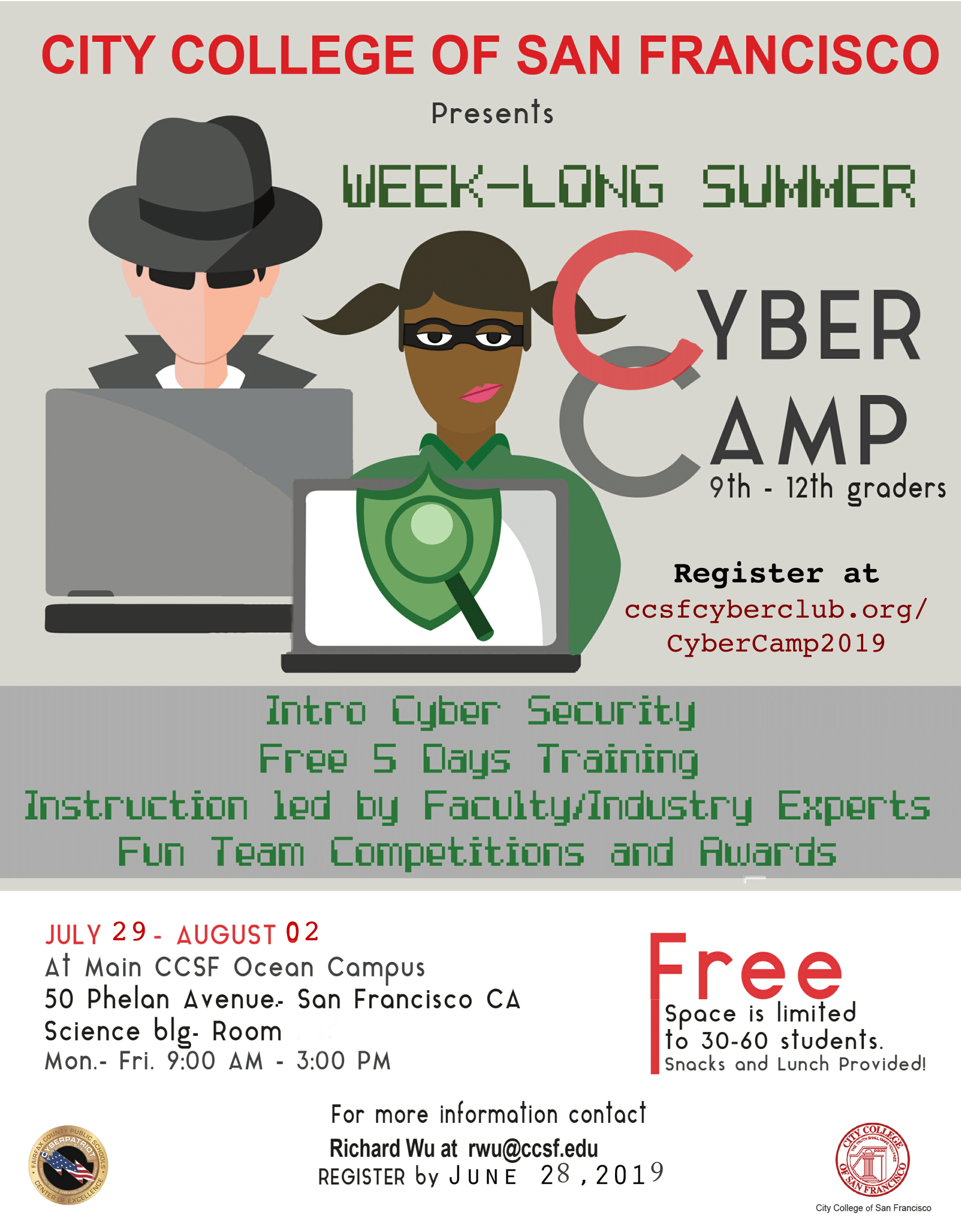 Designed for high school students who want to learn about cyber security. They will get the opportunity to complete a week of training in cybersecurity by highly skilled trainers from City College of San Francisco.